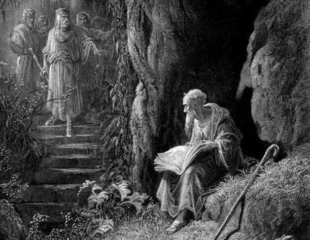One year, he was told of a great host of Saxon soldiers about to come to our shores. So [...] he put on his armour and his heavy sword that usually rested under his pillow, and, still silent, his face unreadable, he walked to the mountain. Once at the top, he brandished his sword in the air around his head, shouting and moving with ferocious ardour, as if he had been facing a thousand invisible foes. From dawn til dusk, he fought thus, under the sun. [...] Only when the evening came did he stop, taking water from a rock and washing his sweat.